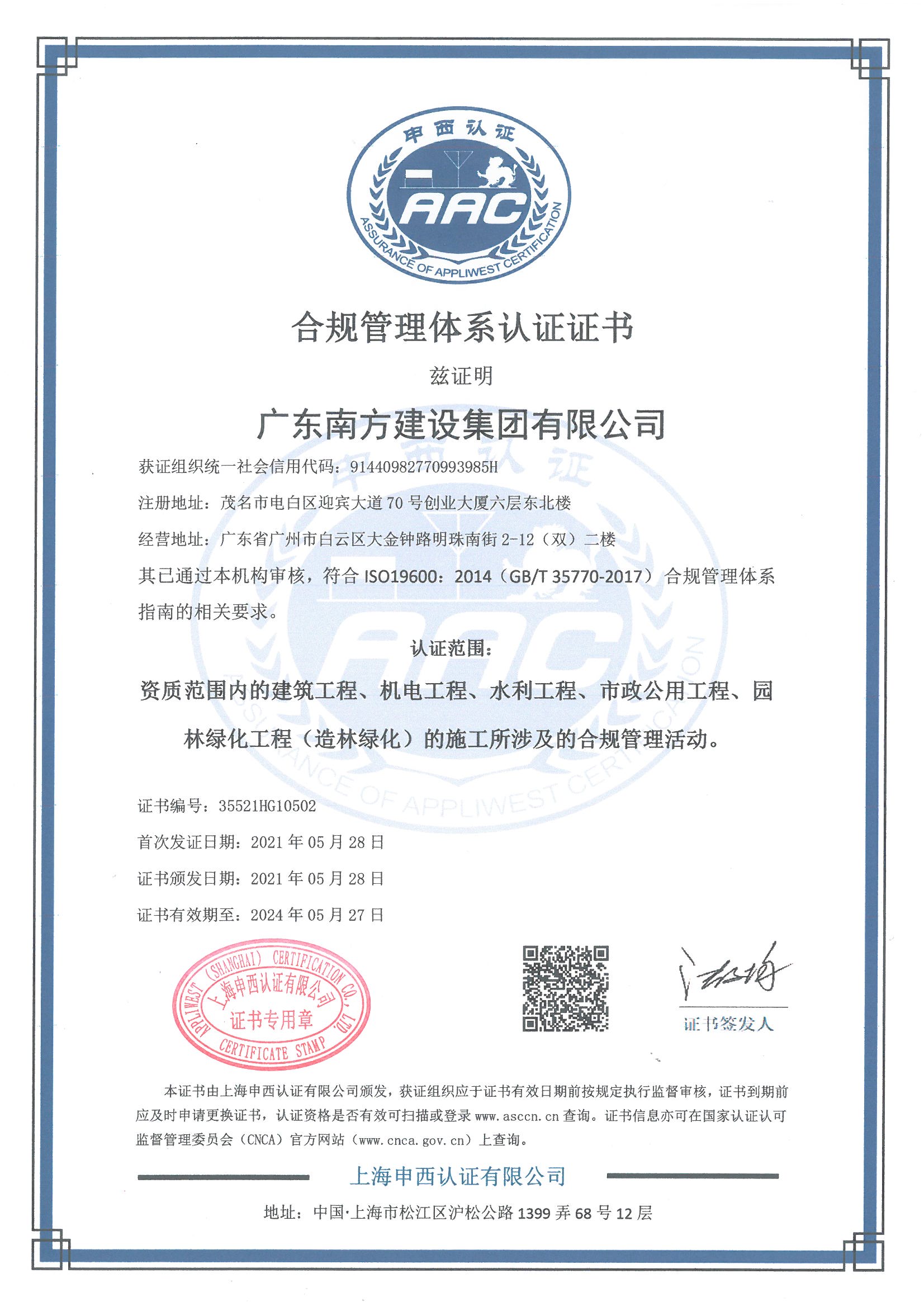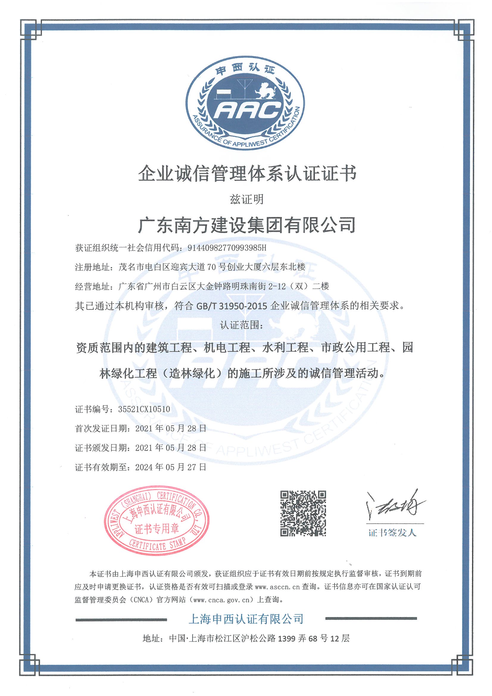 企業(yè)誠(chéng)信管理體系認(rèn)證證書