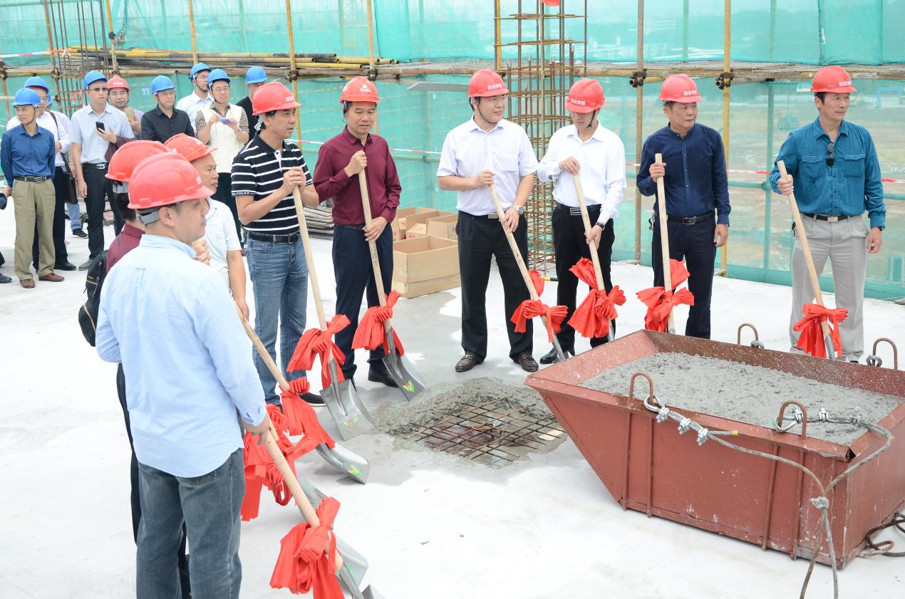 10月19日上午,公司承建的廣東白云學(xué)院北校區(qū)首期教學(xué)樓工程封頂儀式在施工現(xiàn)場隆重舉行,標志著白云學(xué)院北校區(qū)項目建設(shè)取得階段性勝利。廣東白云學(xué)院董事長謝可滔、副董事長謝少華、校長黃大乾、黨委書記劉劍鋒、各二級學(xué)院等負責(zé)人,南方建設(shè)集團董事潘錦開、項目經(jīng)理潘杰良,以及項目部和公司職能部門相關(guān)人員參加了封頂儀式。