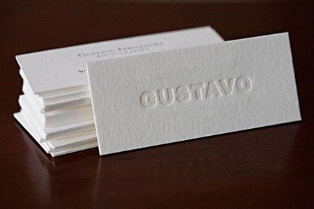 凹凸壓印習(xí)稱“凹凸印刷”、“軋凹凸”或“壓凸印”,該工藝**的特色是不用油墨,而是將圖案雕刻在金屬版上,或凹版或凸版,像打鋼印一樣,給凹凸版以機(jī)械壓力,單純利用壓力在已經(jīng)印好的彩色印刷品或空白的紙上壓出凹凸圖形和花紋。凹凸名片的優(yōu)點(diǎn)是質(zhì)感強(qiáng)烈,有浮雕的效果。